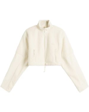 Bubble Sleeve Cropped Zip Up Jacket - Pink