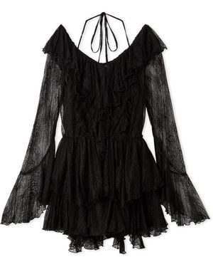 Chiffon Frill Mini Combo Dress - Black