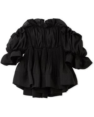 Boho Lace Textured Puff Sleeve Blouse - Black