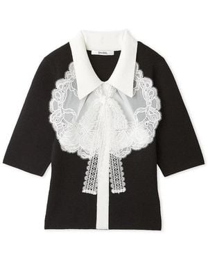 Cutwork Lace Frill Pullover - Black