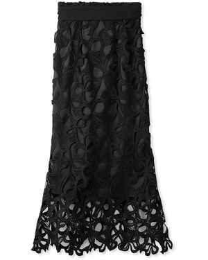 High Waisted Lace Cutout Maxi Skirt - Black