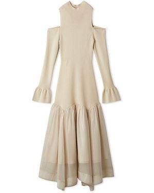 Chacott Knit & Back Bow Puff Sleeve Midi Dress - White