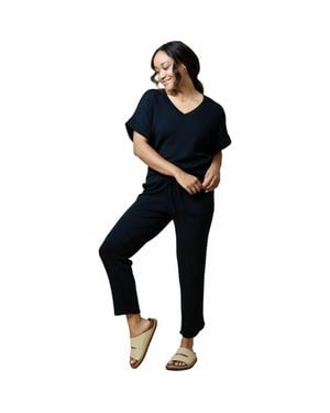 Waffle Marshmallow V-Neck Lounge Set - Black