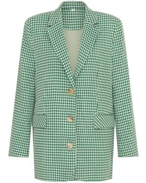 Single Breasted Checked Tweed Blazer - Green