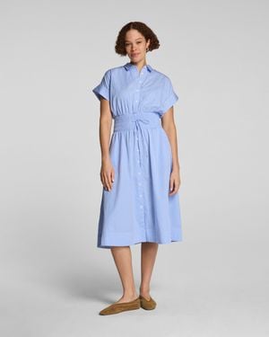 Poplin Button-Down Mini Shirt Dress With Tie Belt - Blue