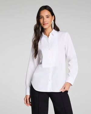Poplin Mini Pintuck Button-Up Shirt - White