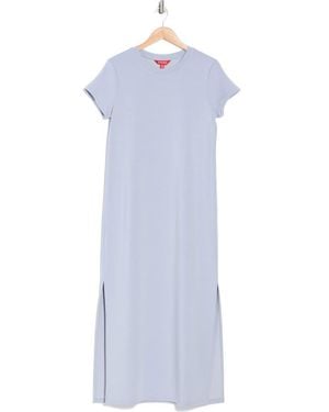 Smooth Jersey Crewneck Short Sleeve Midi Dress - Blue
