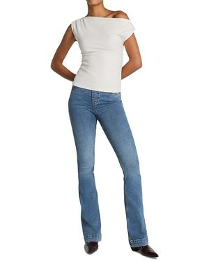 Ribbed Knit Off The Shoulder Ruched Top - Blue