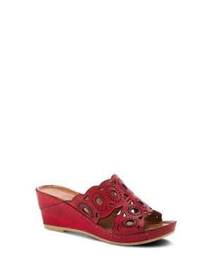 Happy Multi-strap Leather Slip-on Clogs - Red