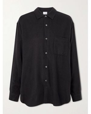 Oversized Silk-Blend Flannel Shirt - Black