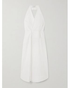 Cotton-Blend Poplin Halterneck Wrap Maxi Dress - White