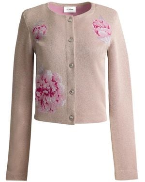 Renee Metallic-Peony-Jacquard-Knit Jacket - Pink