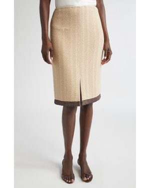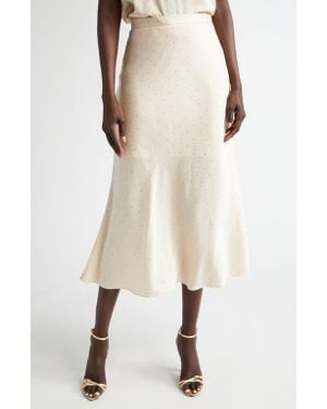 Crystal Embellished Stretch Satin Midi Skirt - Natural