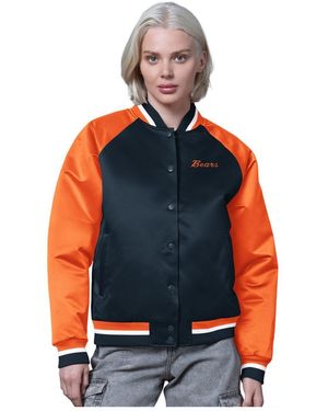 Navy/orange Chicago Bears Satin Full-snap Vintage Varsity Jacket - Blue
