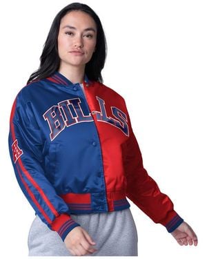 Royal/red Buffalo Bills Zone Blitz Cropped Full-snap Satin Jacket - Blue