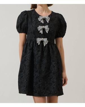 Arielle Jacquard Glow Bow Velvet Mini Dress - Black