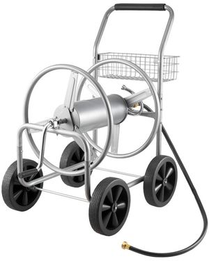 Mobile Steel Hose Reel Cart - Metallic