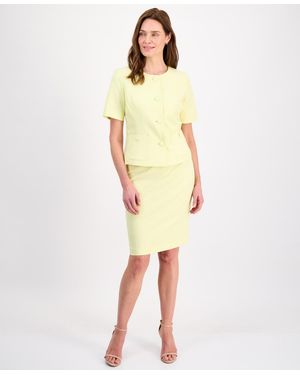 Short-sleeve Four-button 2 Piece Skirt Suit - Yellow