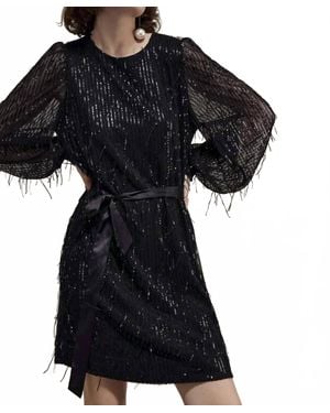 Fringe Dress With Sequins - Black