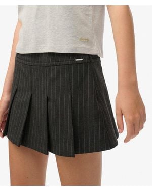Ladies Classic Checked Low Rise Pleated Mini Skirt - Black