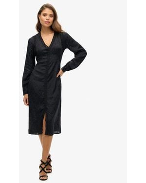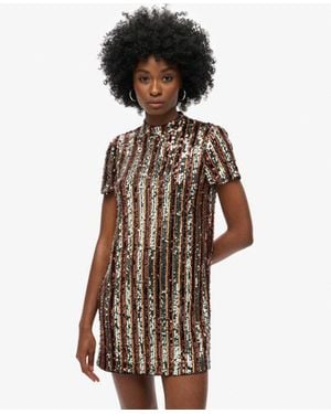 Loose Fit Floral Print Printed Short Sleeve Tiered Midi Dress - Brown