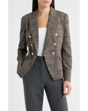 Plaid Double Breasted Blazer - Brown
