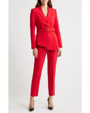 Peak Lapel Belted Blazer & Pants Set - Red