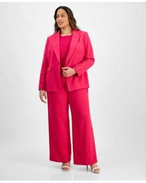 Plus Size Single Button Crepe Blazer Knit T Shirt Wide Leg Pants - Red