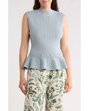 Pointelle Peplum Sweater Tank - Gray