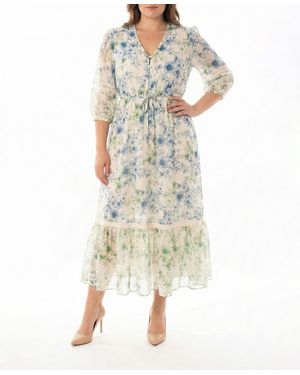 Plus Size Floral-print Chiffon A-line Midi Dress - Green