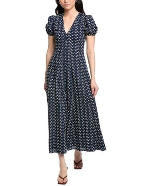 Floral-print Tie-cuff Ruffled-hem Dress - Green