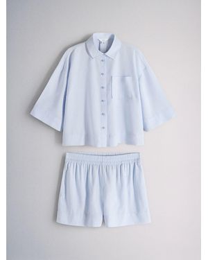 2 Pack Shirt And Shorts Co-Ord Set With Linen - Blue