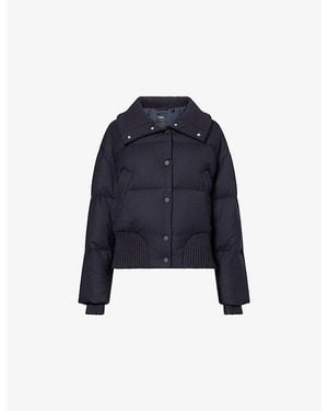 Cozy Collar Down-Padded Wool-Blend Jacket - Blue