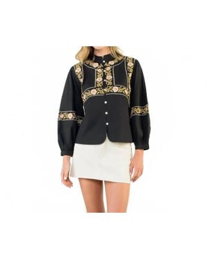 Floral Embroidery Detail Top - Black