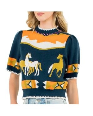 Short Sleeve Horse Detail Top - Blue