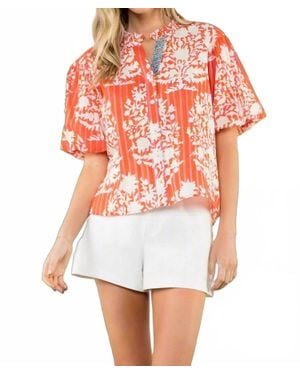 Embroidered Yoke Puff Sleeve Crinkle Top - White