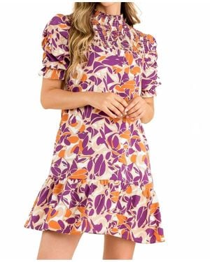 Leaf Print Short Sleeve Smock Dress - Red