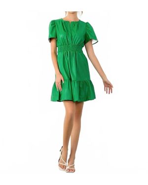 Smocked Waist Leather Dress - Green
