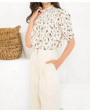 Brittnee Seashells Embroidered Puff Sleeve Top - White