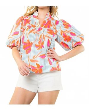 Ginny Puff Sleeve Boho Floral Top - Blue