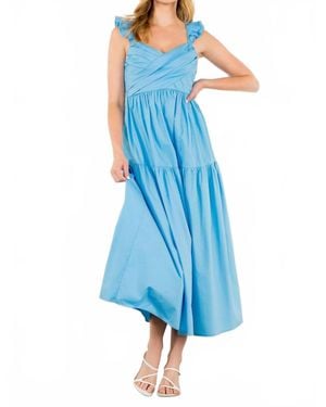 Tiered Poplin Maxi Dress - Blue