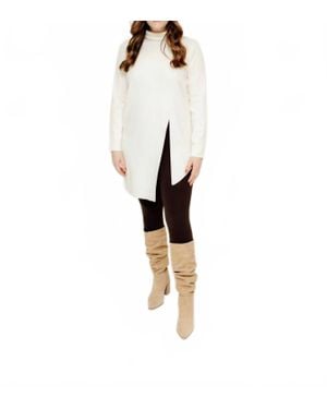 Agnes Slit Sweater Dress - White