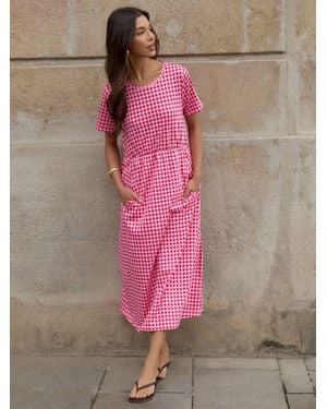 Petite Jersey Midi Smock Dress With Pockets - Pink