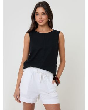 Linen Blend Tailored Shorts - Black