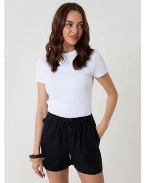 Linen Blend Tie Waist Shorts - White