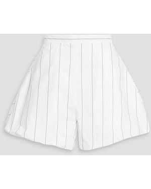Gathered Striped Cotton-Blend Poplin Shorts - White