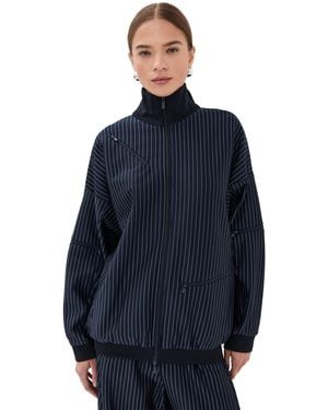 Pinstripe Active Knit Zipper Detailed Track Jacket - Blue