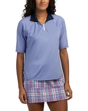 Upf 50 Cooling Plaid Long Sleeve Zip Mock Neck Top For Nylon - Purple