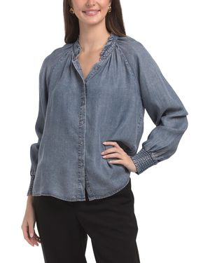 Denim Pleated Waist Blouse For Cotton/Polyester - Blue