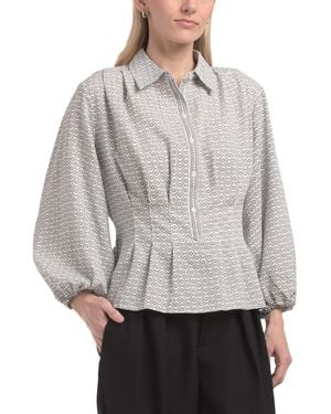 Long Sleeve Pleated Blouse For Polyester/Rayon - Gray